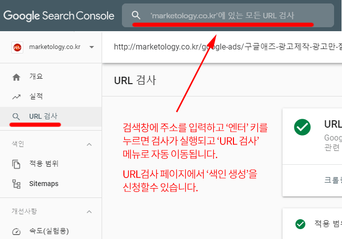 구글 서치콘솔 ‘URL 검사’ 도구